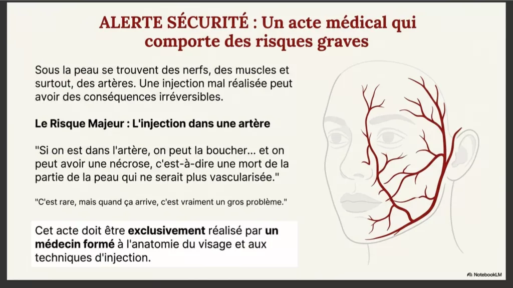 Les effets secondaires sont le plus souvent bénins et temporaires : rougeur, gonflement, ecchymoses ou sensibilité locale. Ils disparaissent en quelques jours. Des complications plus rares existent, ce qui justifie une prise en charge par un médecin formé.