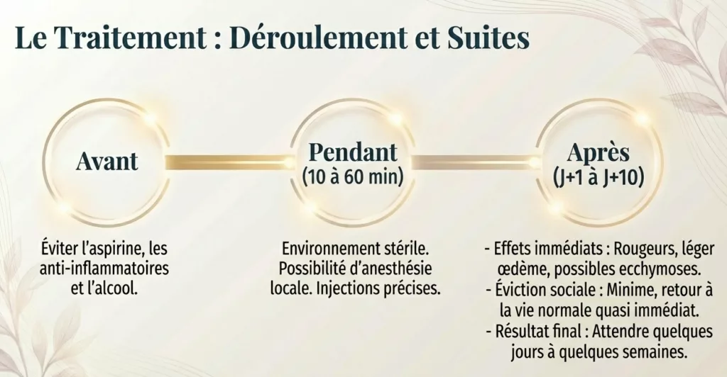 L’acide hyaluronique est utilisé pour hydrater la peau, améliorer certains creux et restaurer des volumes discrets lorsque cela est nécessaire. Différentes densités existent selon les zones traitées.