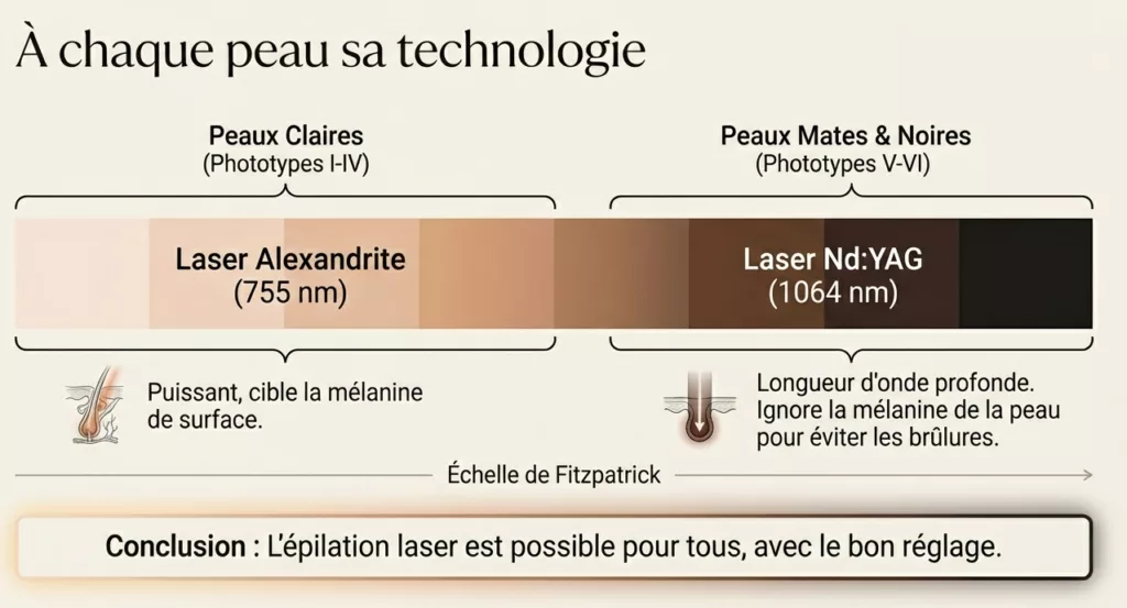 Toutes les peaux et toutes les pilosités ne réagissent pas de la même manière au laser. Un diagnostic préalable permet d’évaluer :