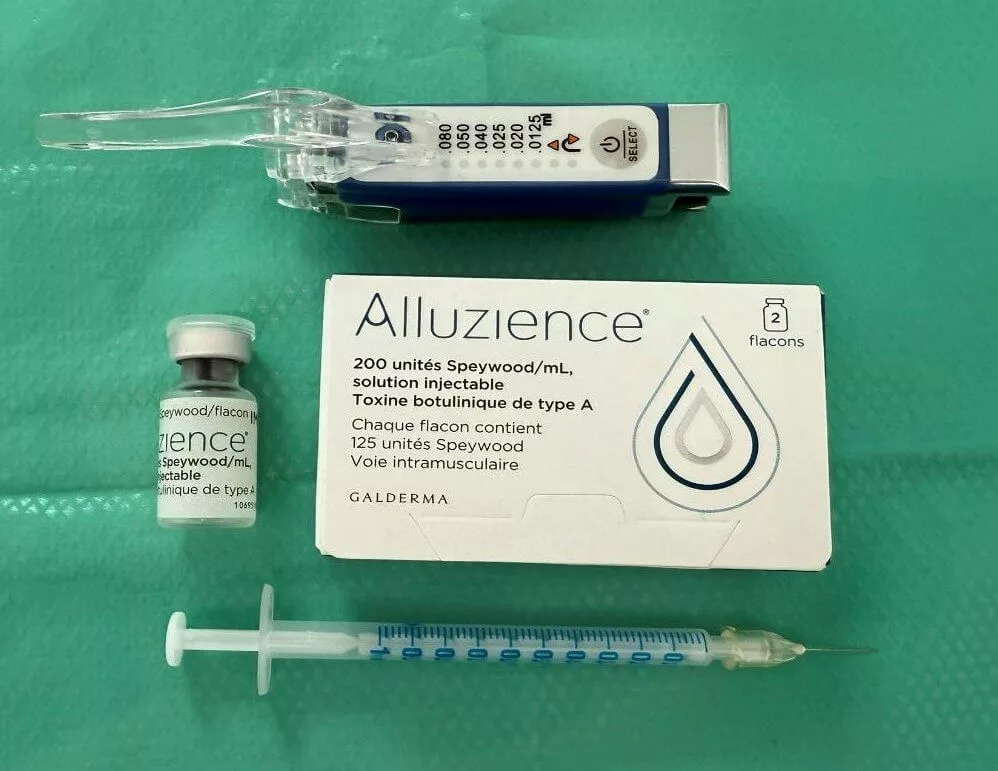 Photo du matériel utilisé par le Dr Molinari (le Botox est la toxine de Galderma dénommée Alluzience, le stylo motorisé Juvapen) :