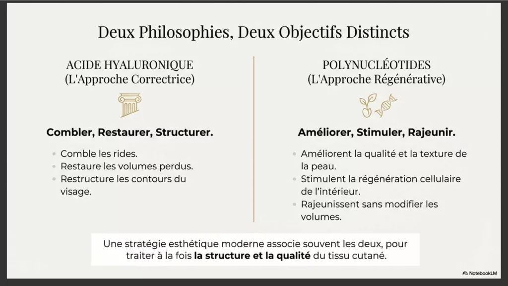 Ces deux techniques, couramment proposées par un médecin esthétique à Paris, répondent à des objectifs différents :